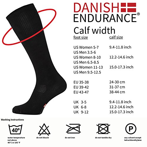 Organic Graduated Compression Socks by DANISH ENDURANCE, for Men & Women, Stockings for Flight, Travel, Nurses, Pregnancy, Shin Splints, Running & Sports. Boost Performance, Circulation & Recovery
