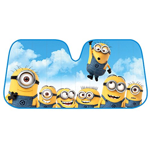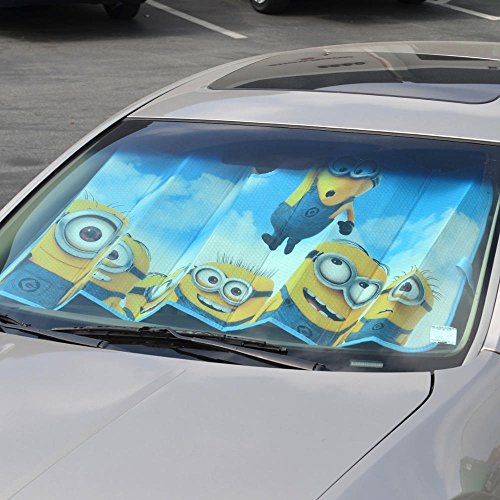 BDK Despicable Me Minion Sunshades are fashionable auto shade that help keep the interior of your vehicle cooler and protects your interior from fading while also showing style and fashion. The sunshades features and benefits are fits most cars, SUVs and pickup trucks, folds easily and has a strap for storage, helps protect interior from harmful sun and heat, easy installation with no tools needed and your vehicles sun visor helps hold screen in place, no additional parts needed.