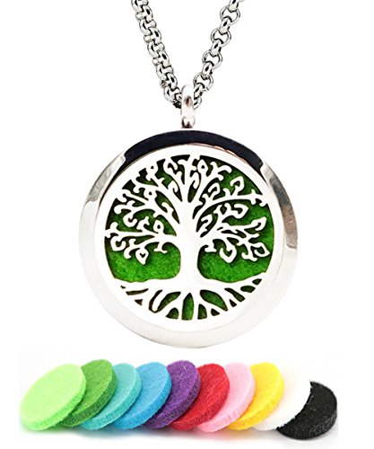 Aromatherapy Essential Oil Diffuser Necklace Tree of Life Pattern Stainless Steel Locket Pendant