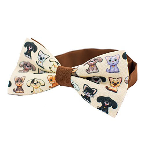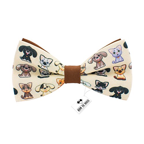 Bow Tie House Pets pattern bow tie, unisex pre-tied brown color with dogs and cats