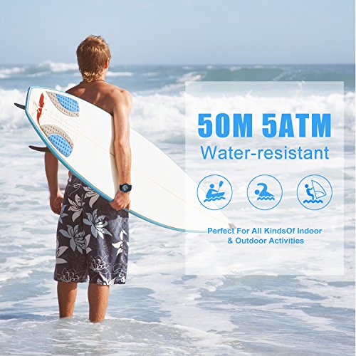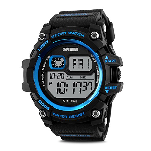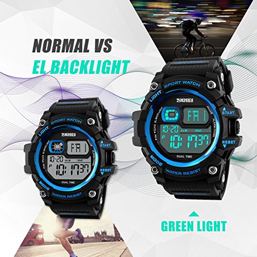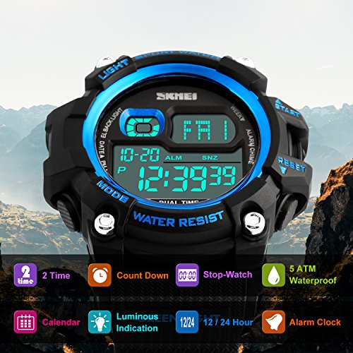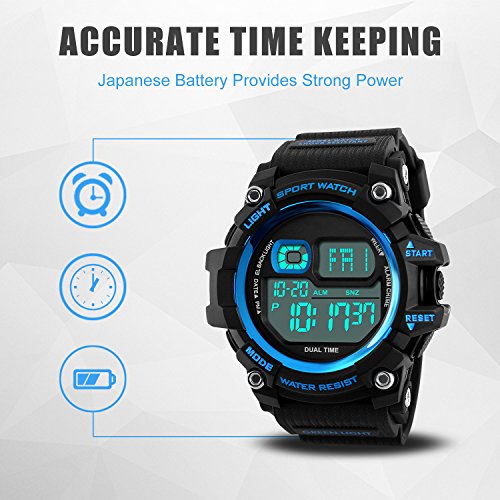 -. Title : Mens Watches, Outdoor Sport Watches for men Military Waterproof LED Electronic Chronograph Wristwatch Back Light 50M Water Resistant Stopwatch Alarm Week Date Snooze - Blue