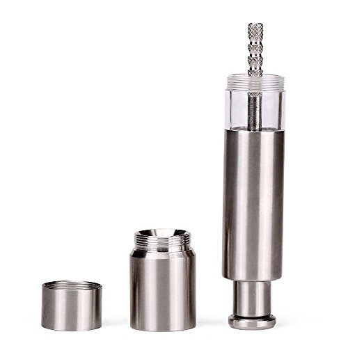 Clear to see - Superior stainless steel body with a clear window for viewing contents.
