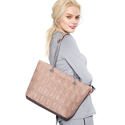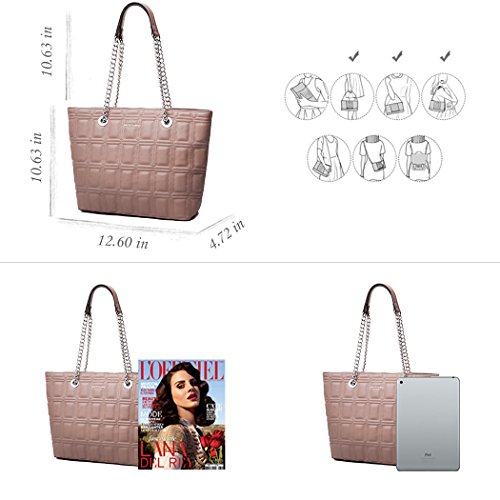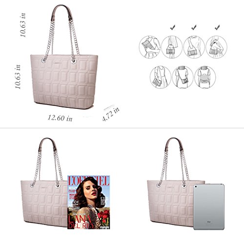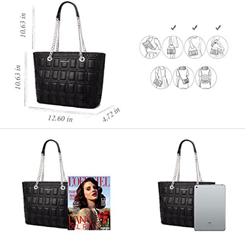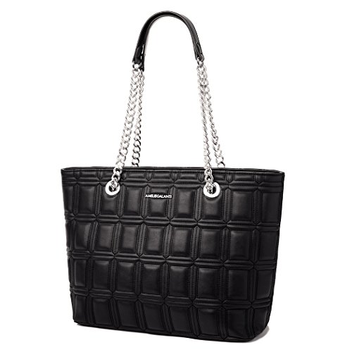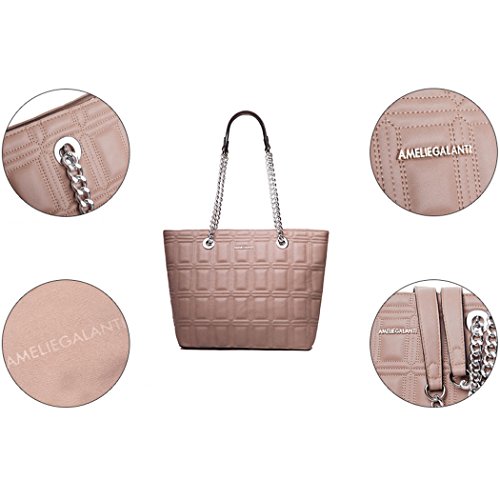 -. Brand : AMELIE GALANTI -. Department : womens -. Feature : Main material: PU leather, Lining material: Cotton High quality of hardware. / Dimension: 12.59(L)*4.72(W)*10.62(H) / Brand design with quality details.Geometric and solid pattern. Casual tote bag absolute comfort touch feeling. / The bag totally have 3 compartments. One is closure by zipper, others are magnets. The bag capacity enough for A4 paper, IPAD and other things. / Many compliment will be received. Versatile for all occasions. -. ProductGroup : Shoes -. ProductTypeName : HANDBAG -. Title : AMELIE GALANTI Womens Purse Handbags Tote Shoulder Bags Satchel Purse with Chain Large Capacity