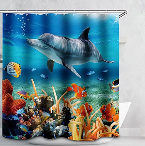 WATATA Dolphins Blue Ocean Tropical Fish Coral Undersea World Waterproof Fabric Bathroom Shower Curtain 72" x 72"