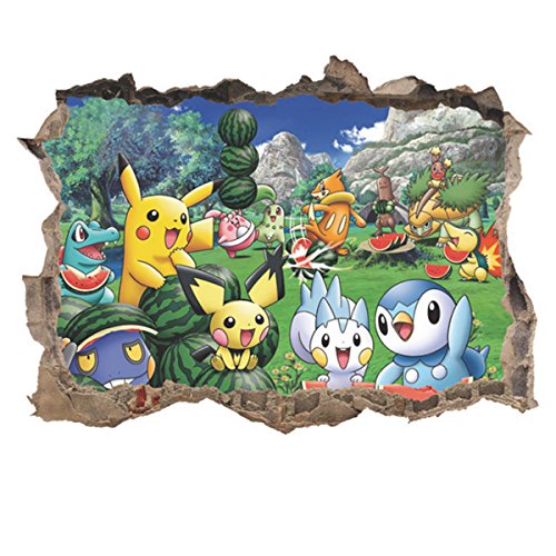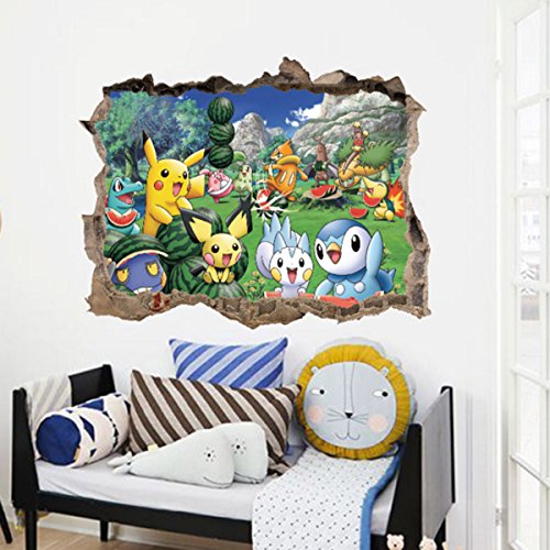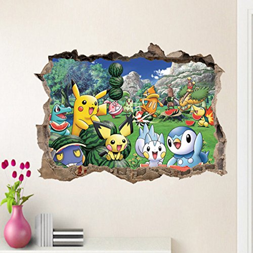 DIY Removable 3D Pokemon Pikachu Charmander Snorlax Art Mural Vinyl Waterproof Wall Stickers Kids Room Decor Nursery Decal Sticker Wallpaper, 23.6''x17.7''