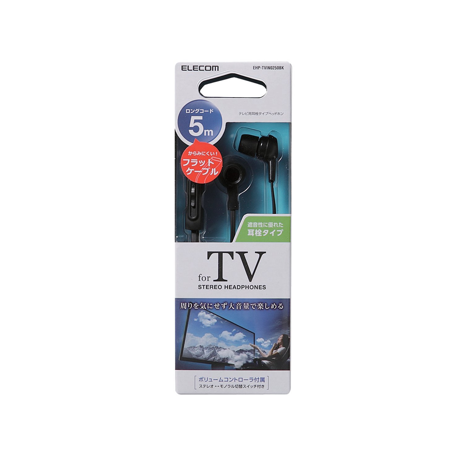 Elecom TV earplug type headphones (both ears) about 5m EHP-TVIN0250BK