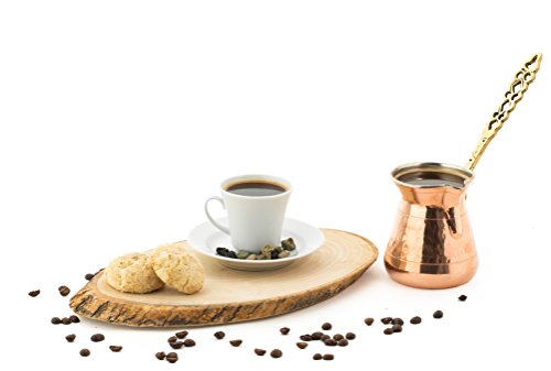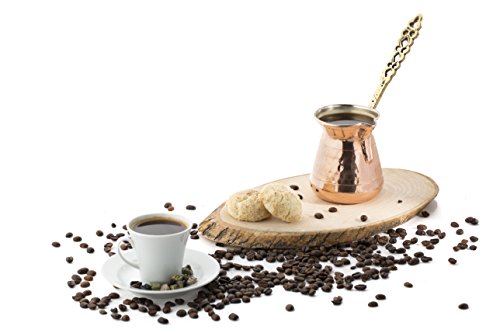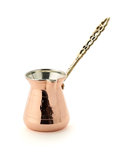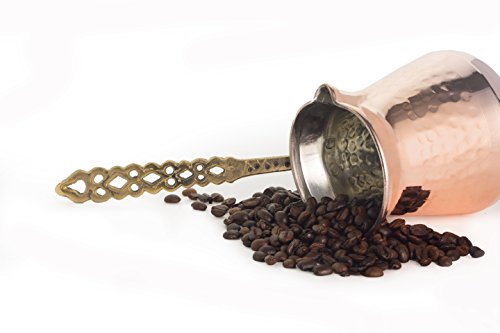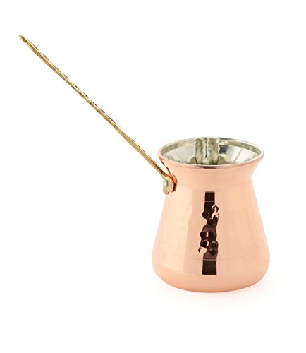 Studio : Dexart Home Basics Publisher : Dexart Home Basics Product Description Enjoy the perfect Turkish coffee with this gorgeous 100% solid copper Turkish coffee pot! Enjoy the maximum heat control benefits of solid copper cookware, the best heat conducting element available. Our handmade ibrik coffee pots are 2mm thick, twice as thick as those who look similar but are thinner. Handle part is made of brass. Thick copper not only acquires and transfers heat more efficiently but also are more durable. Natural copper will darken over time which is a proof that it is, in fact, natural solid copper. You can simply apply a copper cream and it will shine like new. 0
