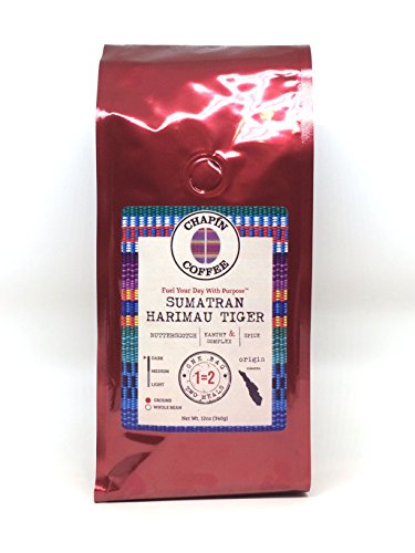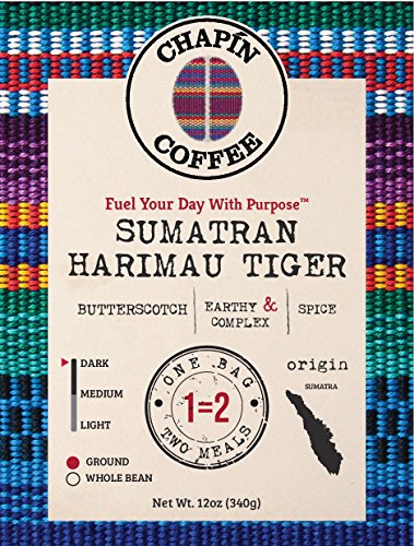 SUMATRA MANDHELING HARIMAU TIGER SPECIALTY DARK ROAST: 12 OZ, GROUND, SINGLE ORIGIN, NON-GMO, 100% ARABICA COFFEE FROM THE CHAPÍN COFFEE GOURMET COLLECTION