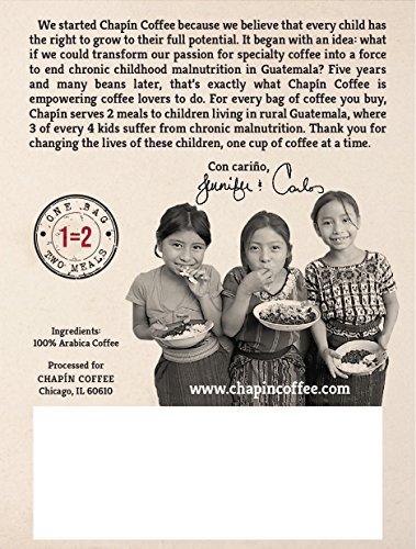 • For each bag of Chapín Coffee you buy, we provide 2 meals for malnourished children in Guatemala's coffee growing communities