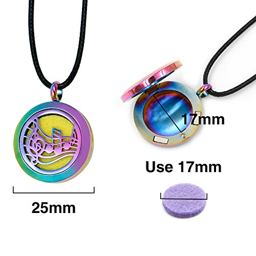 Diffuser locket diameter:25mm; Main Material : Stainless Steel; Main Color: Colorful. Its material is very durable, you can keep this neckalce diffuser a long time