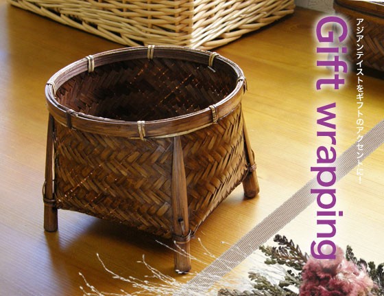 結婚祝い・誕生日・記念日・新築・引越し祝いなどのギフトに最適!しっかりとした足の付いたアジアンなバンブーバスケット。アジアンテイストを持ちながら、どんなインテリアにもマッチします。