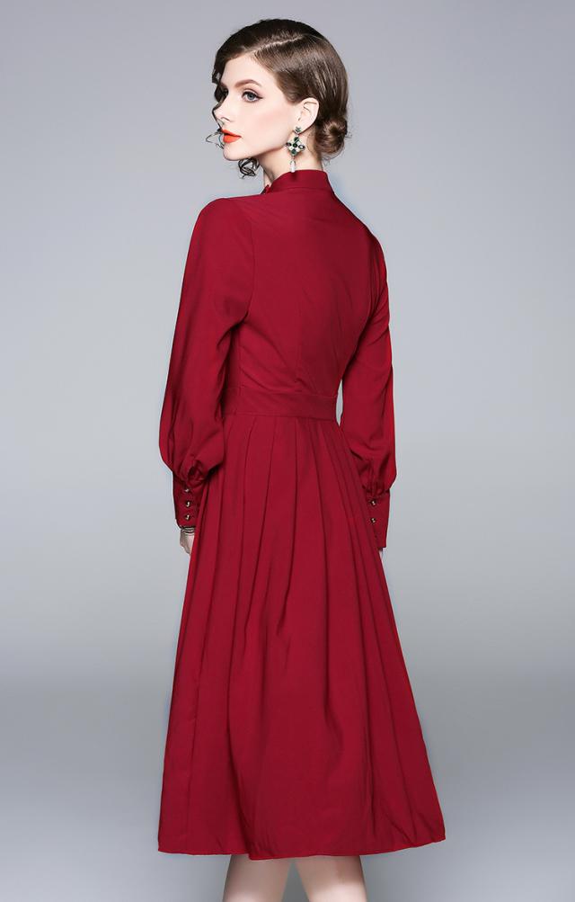 ボリュームがある袖とフィットアンドフレアの美しいシルエットのドレスです。