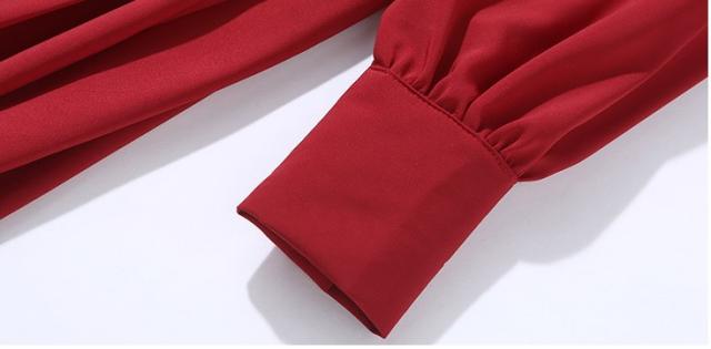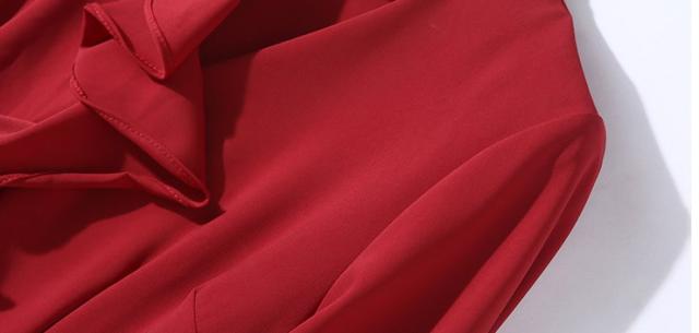 スタントカラーとVネックとフリルの組み合わせでエレガント感を出す。