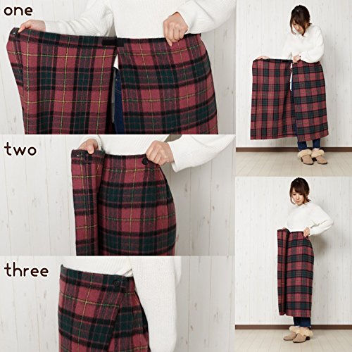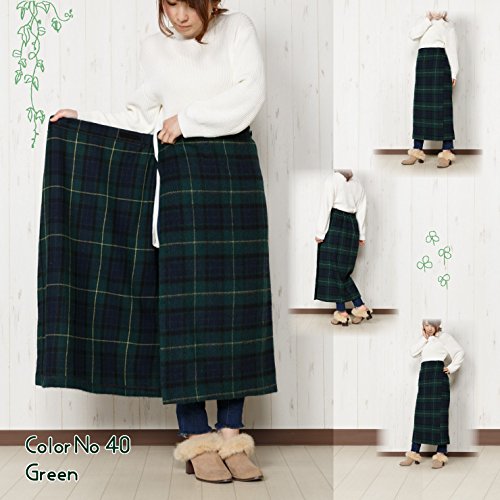 -. Title : TCC 温+(プラス)ウール混素材 ほっとする格子柄防寒巻スカート 膝掛け 巻きスカート 2WAY仕様 約85cm丈