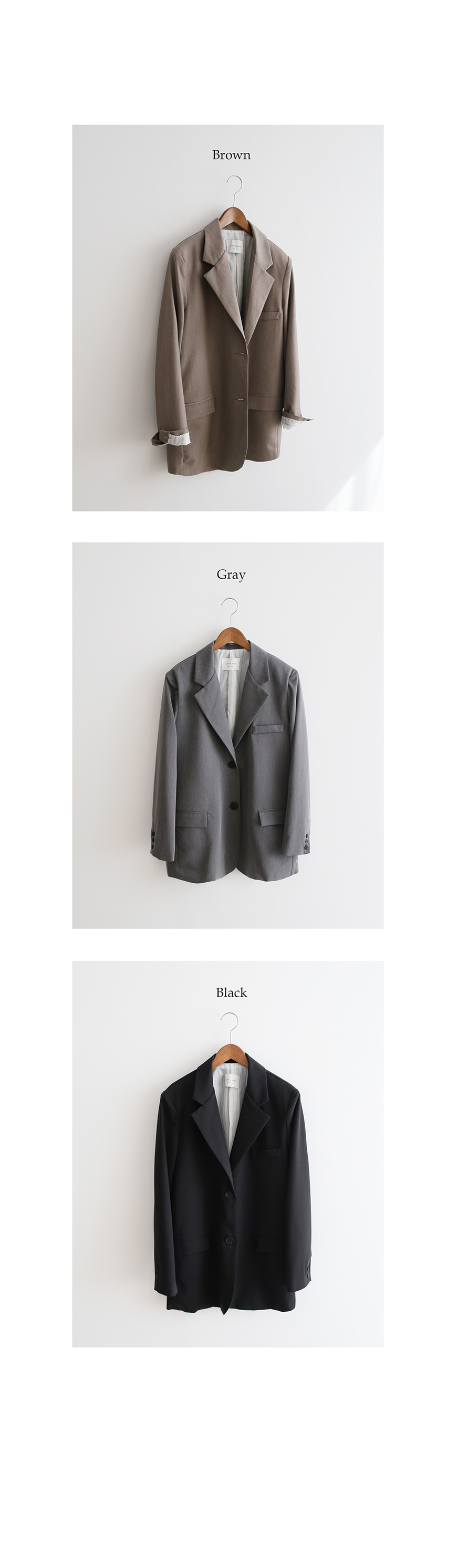 딱 심플한 자켓 디자인에 루즈한 핏감이라 다양하게 연출하기 좋으실텐데요