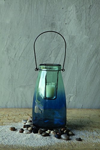 - Title : Creative Blue Ombre Glass Votive Holder with Metal Handle