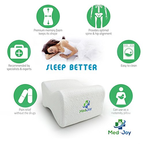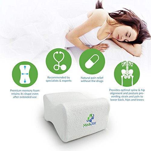 Studio : Infinity3 Medical Publisher : Infinity3 Medical Product Description WHEN DOCTORS HAVE BACK LEG PAIN THIS IS WHAT THEY USE... If sciatic pain, lower back pain or hip discomfort keeps you awake at night Med-Joy's 100% Memory Foam Knee pillow can help alleviate your pain. Med-Joy's Knee Pillow is ergonomically designed to fit comfortably between your legs and provide ideal spinal alignment and support that helps reduce sciatica, lower back, hip or joint pain. Having pain can keep you tossing turning and can interrupt the overall quality of sleep. Poor alignment, joint back pain are just a few causes of unhealthy sleep. Using the Med-Joy's Knee Pillow, you can improve and/or eliminate multiple problem areas and finally feel well rested. It delivers maximum support and comfort while you sleep: 100% High-Density Cut Memory Foam is durable and provides long-lasting comfort which is superior to competitors. This ergonomic contoured design keeps your legs, hip and spine in ideal alignment while sleeping and improves circulation. This pillow is designed with a breathable zippered cover that ensures the pillow does not get hot and is machine washable for easy cleaning. PRODUCT NOTE: MEMORY FOAM IS HEAT WEIGHT RESPONSIVE: Firmness for all memory foam products changes with temperature. Your cushion will feel softer in warm and firmer in cold temperatures. Room temperature is ideal for optimal performance. Med-Joy's Knee Pillow will provide less support with increasing weight. Always consult your physician before using this product for specific health conditions. Product Dimensions: 10 x 8 x 6 inches Item Weight: 12 ounces Click on ADD TO CART NOW and take me home tonight to eliminate pain and have a great sleep. 0