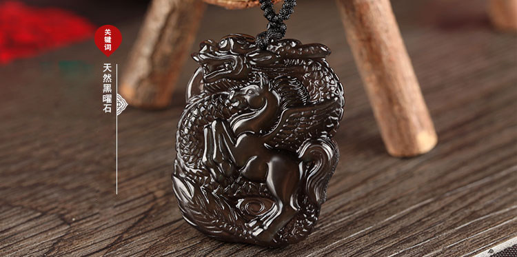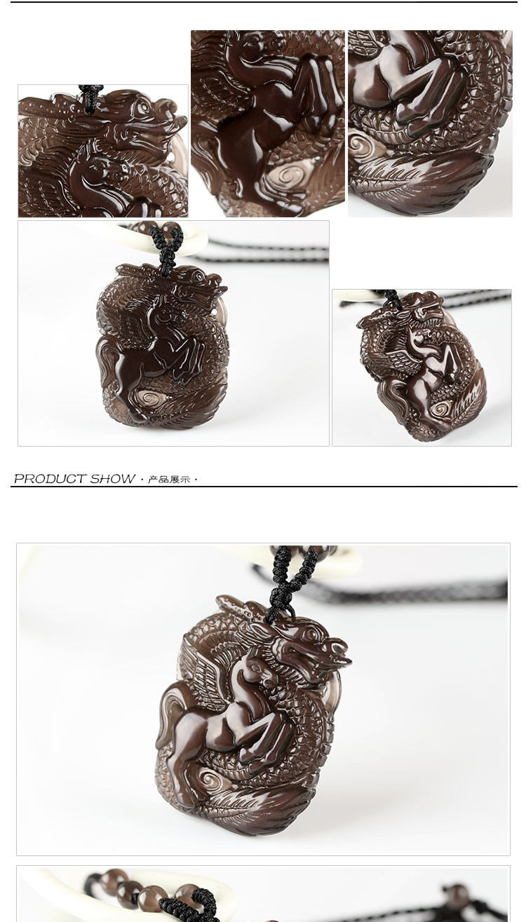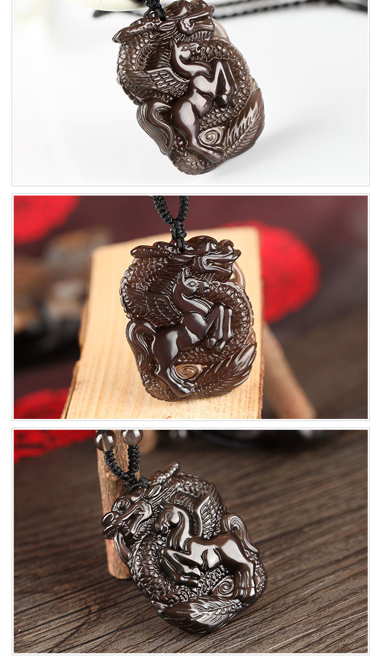 开光 龙马奔腾冰种黑曜石吊坠 属羊开运吉祥物彩虹眼