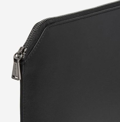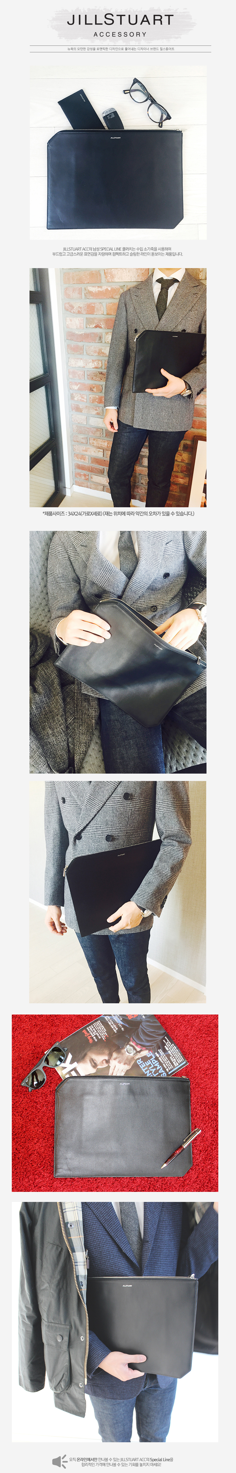 양 사이드의 모서리 부분을 컷팅하여 유니크한 외관을 연출한 클러치백입니다.
