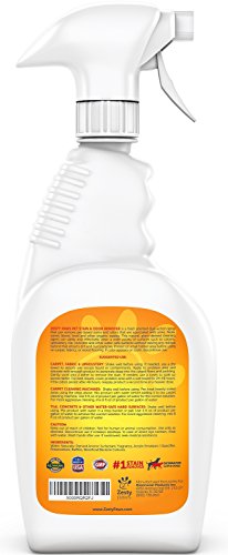 - Feature : A Safe & Effective Deep Cleaner - Zesty Paws' Pet Stain & Odor Remover is a dual-action spray that can rid your floors of spots and odors left behind by dogs, cats and other domestic pets of all types. No matter how big the stain or how strong the smell, this high-powered stain and odor eliminator can do the trick. Works great as a spray or with a carpet cleaning machine. / Works on the Toughest Messes - Uh oh, did your beloved pet leave a little "present" for you? No problem! This premium cleaner clears and eliminates a multitude of pet-based stains such as urine, feces, vomit, blood, food, and other organic wastes. / Great For All Water-Safe Surfaces - Our high-powered cleaner and odor eliminator works wonders on a variety of surfaces such as carpet, upholstery, fabric, tile, concrete, hardwood floors and more. This special plant-derived formula will help turn those black spots on your floor lighter and flush with its original color. / Versatile, Residue-free Stain Removal - This specially formulated cleaner gets rid of the toughest stains and stenches without leaving any residue behind that can attract unwanted dust and dirt particles. For more heavy-duty stains, it works great with a carpet shampooer vacuum machines. / Your Pets Deserve The Best - Zesty Paws' Pet Stain & Odor Remover contains the finest high-grade ingredients around, and is made in an FDA-registered and GMP certified facility in the USA.