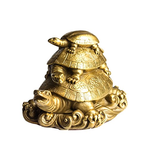 Copper Three Generation Turtles Collectible Figurines Handmade Statue Attract Wealth