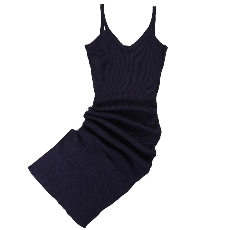 Vネックのロング丈ストラップワンピースです♪リブニット素材でスタイルアップ!