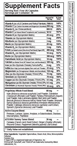 doTERRA®'s Microplex VMz® Food Nutrient Complex is an all-natural, whole-food formula of bioavailable vitamins and minerals that are deficient in our modern diets. The formula includes a balanced blend of essential antioxidant vitamins A, C, and E, and an energy complex of B vitamins presented in a patented glycoprotein matrix. It also contains food-derived minerals of calcium, magnesium, and zinc and trace minerals for optimal bone and metabolic health. Microplex VMz contains doTERRA's Tummy Tammer botanical blend of peppermint, ginger, and caraway to calm the the stomach for those who may have experienced stomach upset with other vitamin and mineral products. Microplex VMz is encapsulated using sodium lauryl sulfate-free vegetable capsules, does not contain wheat or dairy products, and does not include any animal products.Feature