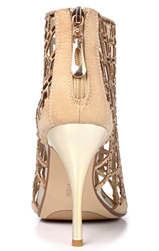 | LizForm Women Cutout Sandal Boots Open Toe Stiletto Sandals Back Zipper Dress Shoes High Heels Boots |