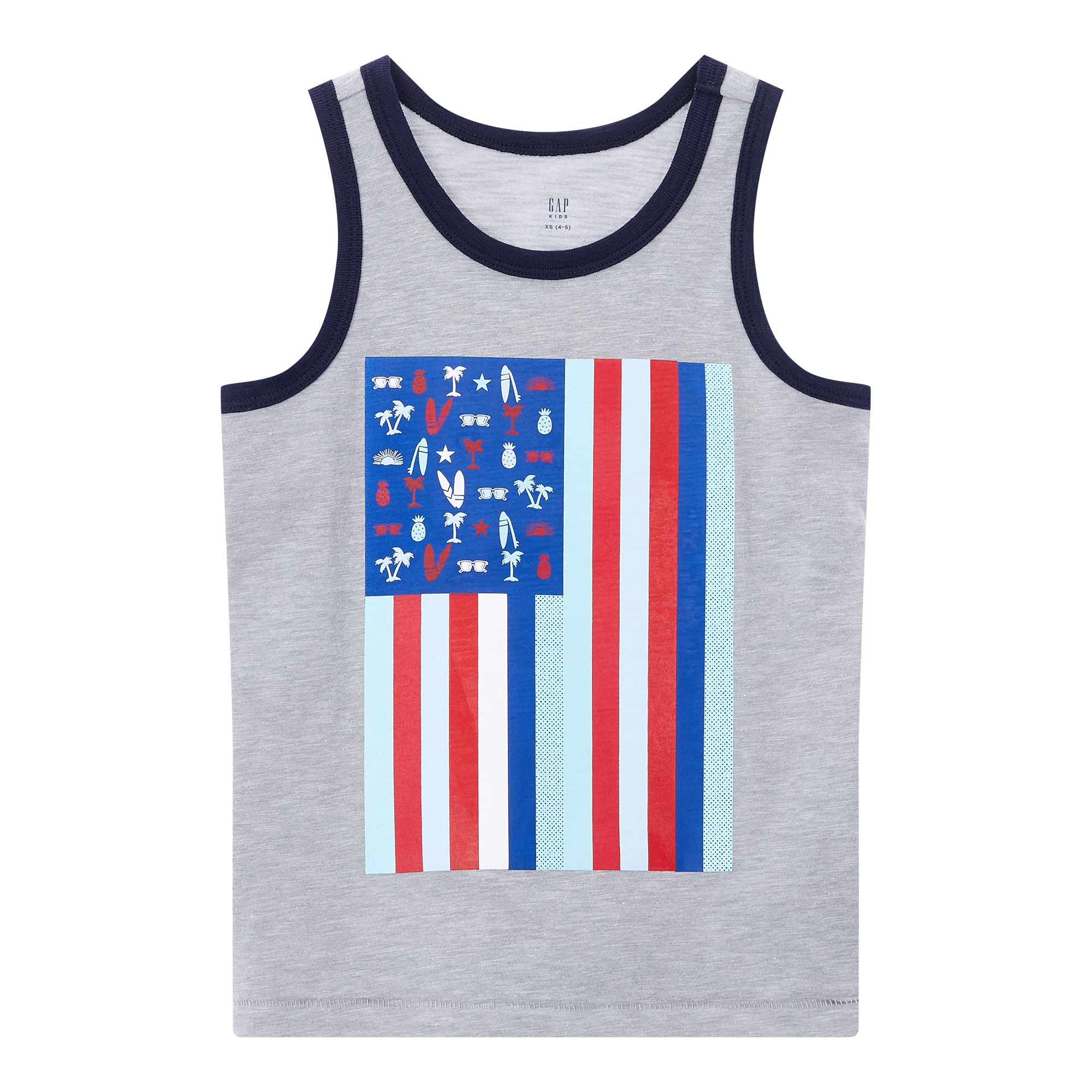 컬렉션 : 2018 Spring/Summer 디자인 포인트 : - 멀티 컬러 스트라이프로 그려진 성조기 그래픽의 민소매 티셔츠 스타일링 추천 : - 데님팬츠, 캐쥬얼 팬츠와 함께 캐주얼하게 스타일링