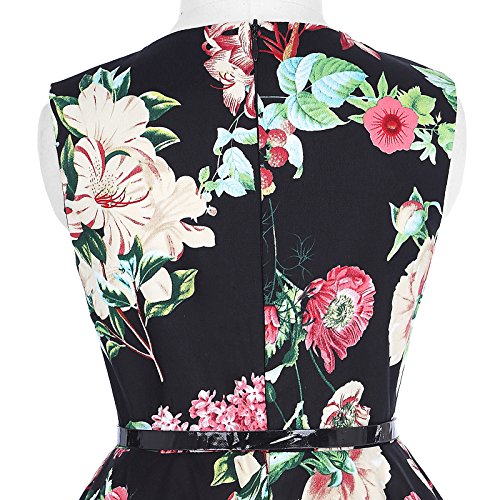 96%Cotton + 4%Spandex, Sleeveless, Zipper Back, Vibrant Flower Patterns, Polka Dot Prints, Full Circle Vintage Dress in Summer, Fit and Flare Effects