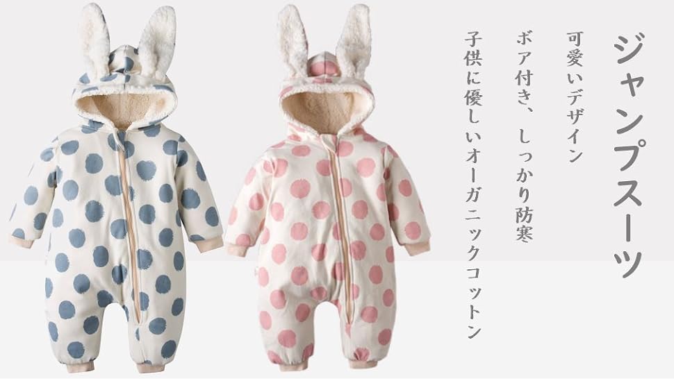 ?防寒対策:裏地はもこもこのフリースボア生地で、寒い冬の日にお出かけにピッタリジャンプスーツです。