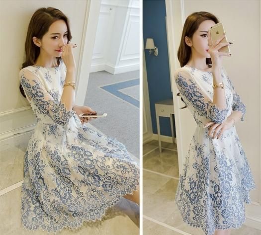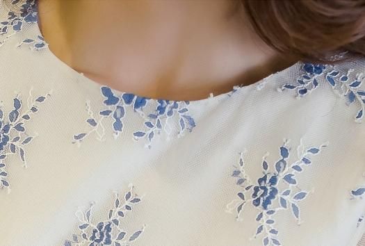 綺麗なホワイトとブルーのひざ丈ワンピース。