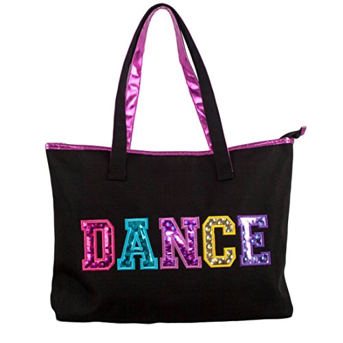 1PerfectChoice Black and Fuchsia Dance Tote Bag with Multicolored Dance Print, Black