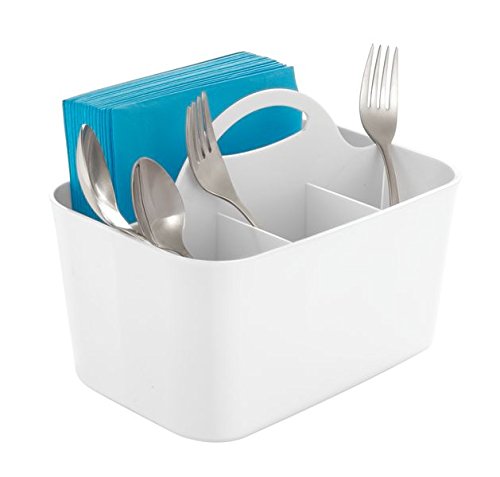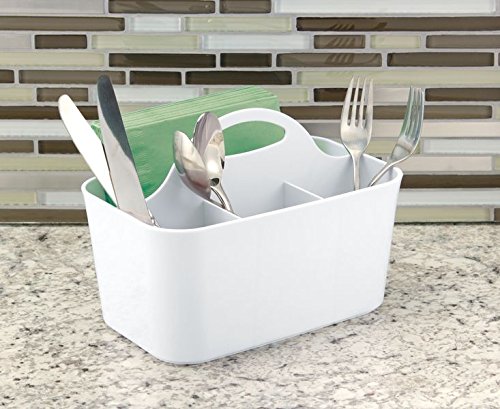 mDesign Flatware/Silverware Organizer Caddy for Kitchen Table, Dining Table - Pack of 2, White