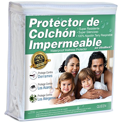-. Title : Protector de colchón impermeable Queen - Funda de terry de algodón suave Premium