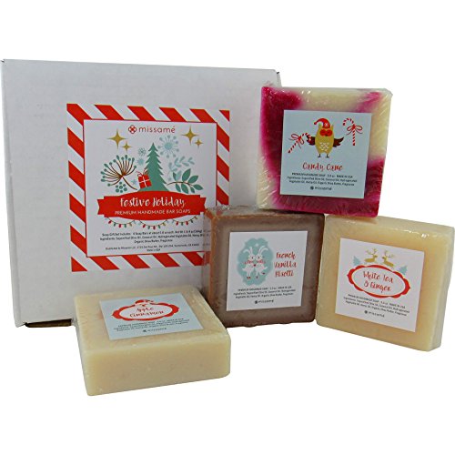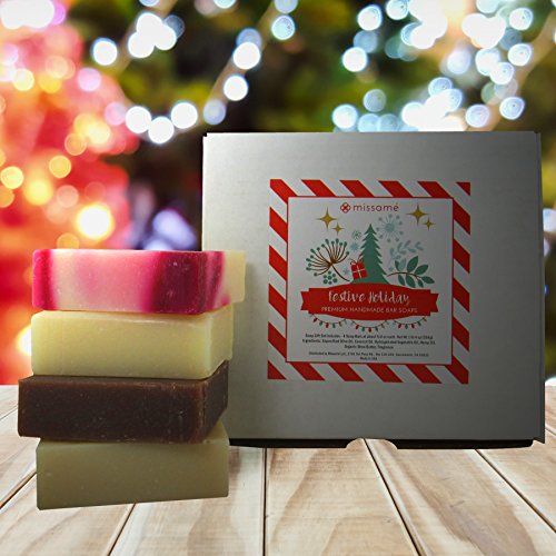 Christmas Holiday Handmade Bar Soap Gift Set, 4 Full Sized Bars 5.0 oz Each, Saponified Olive Oil Base With Organic Shea Butter, Best For All Skin Types b