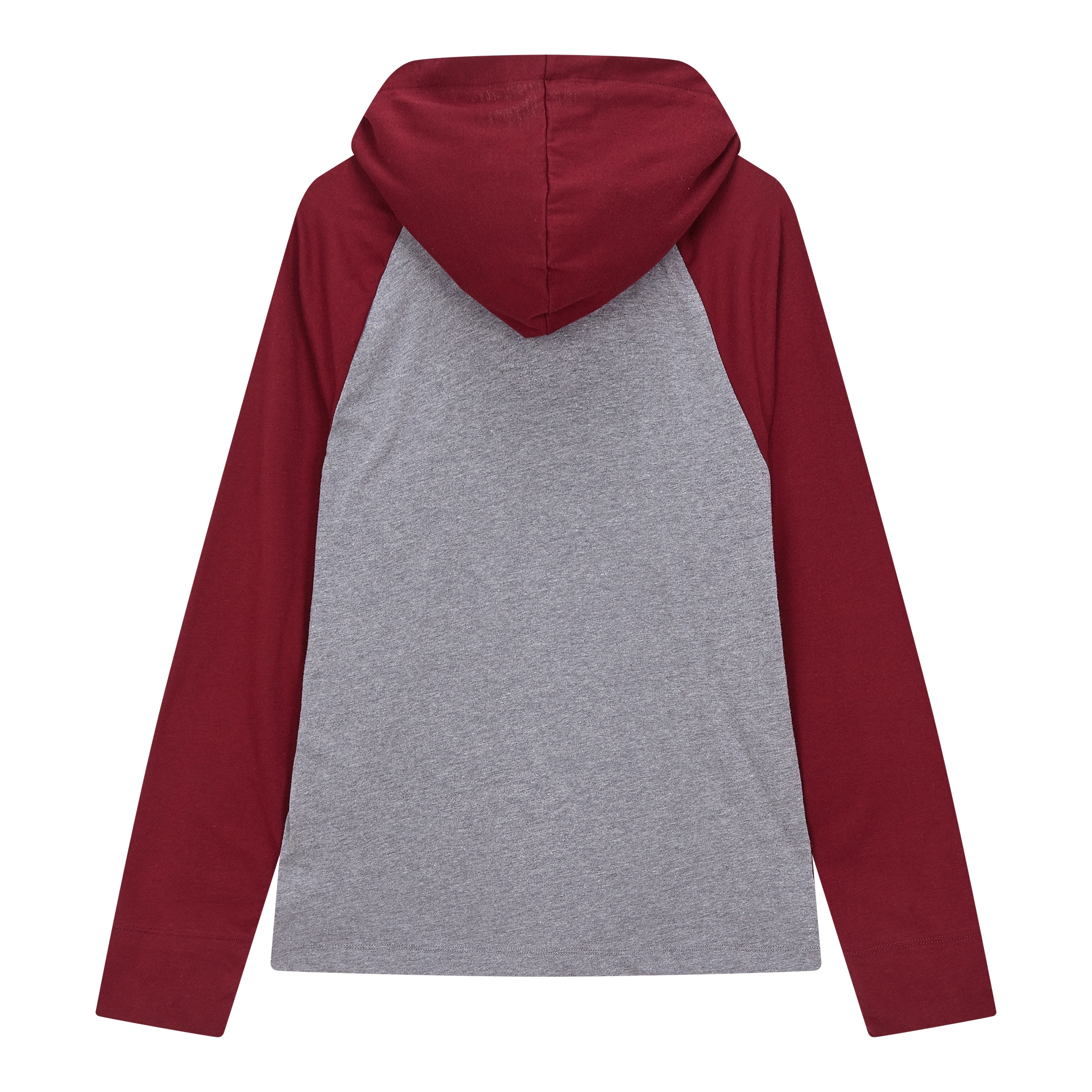 컬렉션 : 2018 Fall/Winter 디자인 포인트 : - 라글란 슬리브가 인상적인 긴팔 후드티셔츠 스타일링 추천 : 다양한 워싱의 데님 팬츠 혹은 아우터/가디건류의 이너 아이템과 매치하여 캐쥬얼룩 스타일링을 할 수 있음