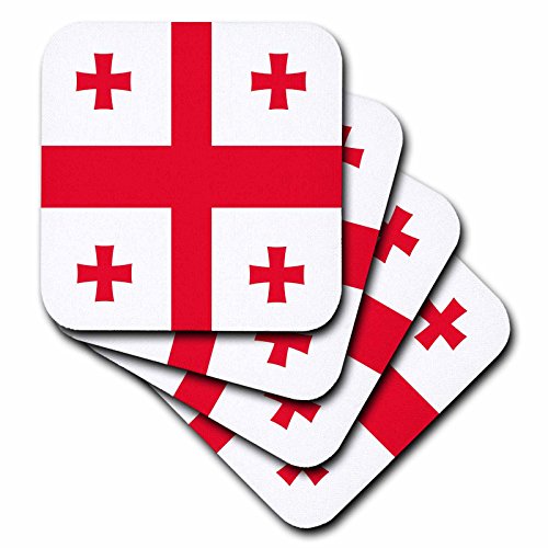 3dRose cst_158284_2 Flag of Georgia Georgian Red Jerusalem Crusaders Cross on White Crosslets St George World Soft Coasters, Set of 8