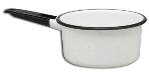 Studio : Granite Ware Publisher : Granite Ware Binding : Kitchen Product Description Granite Ware pots are constructed of low carbon steel with glass coating. Porcelain is fused to the steel at 2,000 degrees Fahrenheit producing a non-porous, inert glass surface that is naturally non-stick. Porcelain can chip if dropped, however this does not reduce the effectiveness of the cookware. There are no PFOA's or other chemicals to alter food's taste, color or healthfulness. Dark porcelain surface and steel core absorbs energy and evenly distributes heat to the contents. 1 quart open sauce pan is perfect for boiling water or cooking your favorite foods. Not recommended for use on glass stovetops. White. 0