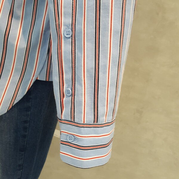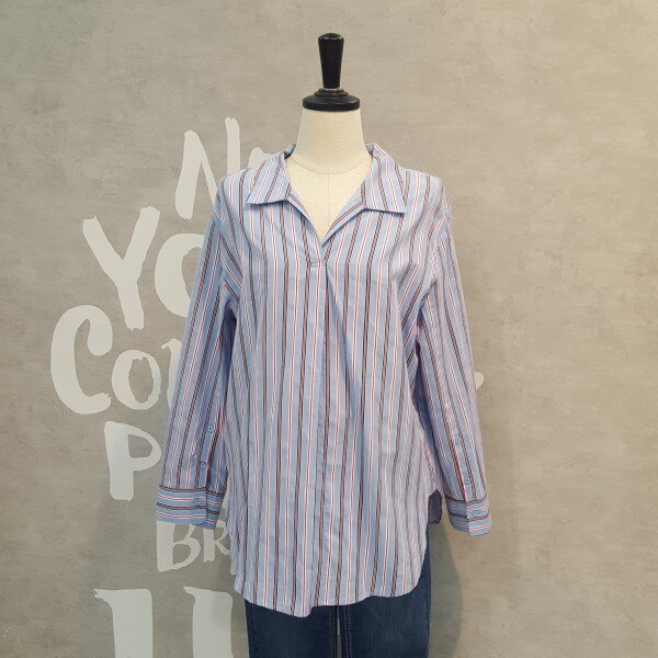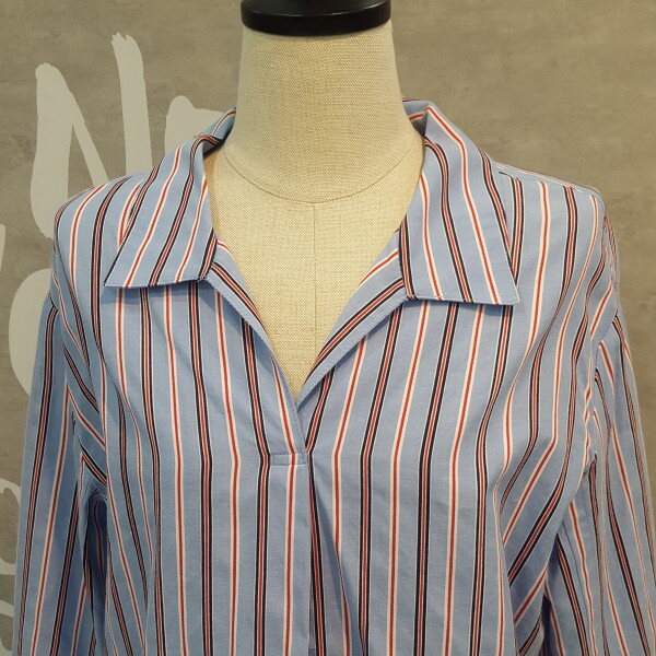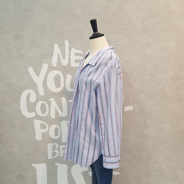 코튼소재의 오버핏 실루엣이 멋스럽고 스트라이프 패턴이 경쾌한 오픈넥 셔츠입니다
