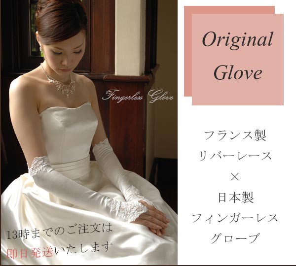 | グローブの生地やレースは繊細なものですので、場合によっては少しのひっかかりなどでも、糸ひけなどが発生する場合もございます。お取り扱いに気をつけてください。 |