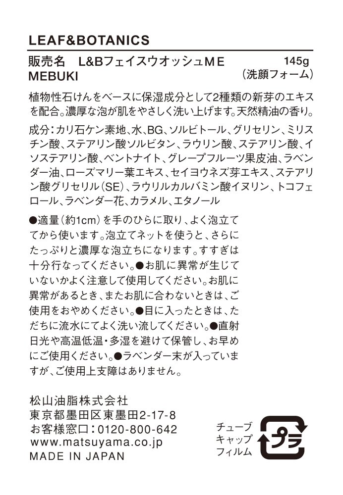Based on vegetable soap, it contains 2 types of sprout extract as a moisturizing ingredient.