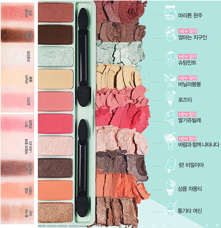 It's no coincidence that the promo photos are ice cream themed - the pastel shades look just like the delicious ice cream flavours! It's a pity my Korean language isn't efficient enough to translate the names of the different shades, but I'm pretty sure they are dessert themed. Just a guess.