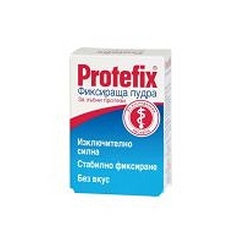 -. Feature : he extra strong Protefix® Adhesive Powder is the classic amongst adhesives and is ideal for minor adhesion problems and low viscosity saliva. Application is extremely easy: Protefix® Adhesive Powder is sP.R.Inkled on the moist denture and develops its secure and lasting fixative power immediately after insertion. / If the denture begins to loosen earlier than expected, you can carry out "repairs" whilst on the move by simply sP.R.Inkling Protefix® Adhesive Powder on the moist denture to fix it firmly back in place for a few hours longer. / Protefix® Adhesive Powder consists of 100% sodium alginate, a very well-tolerated, natural-based substance. / The powder is tasteless and odourless. It has an excellent reputation since many years. It is effective on wet dentures. Especially recommended for users with sensitive mucosa. / Natural Hold on Demand