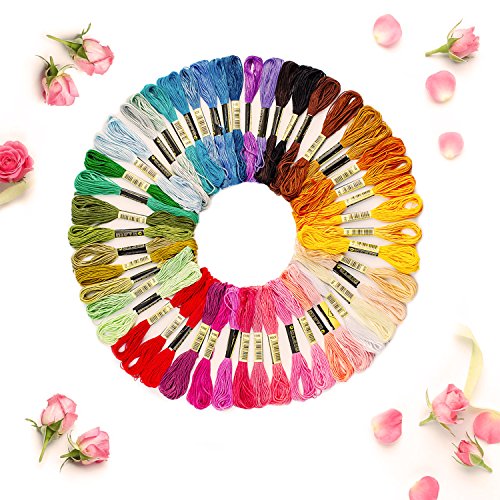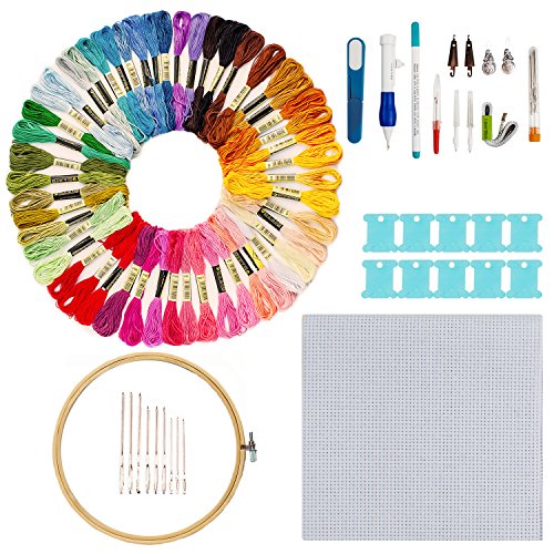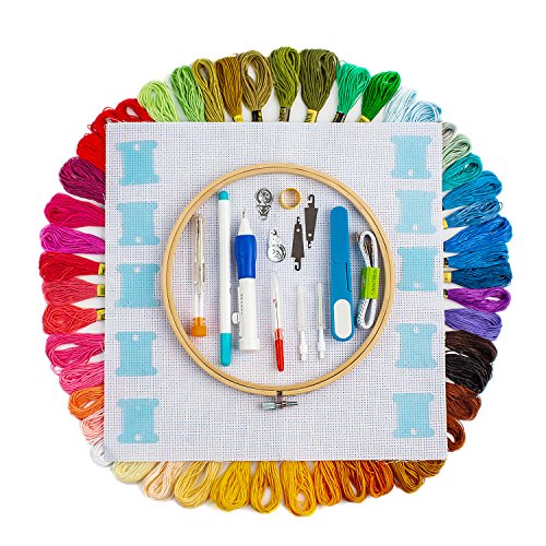 Losun Hand Embroidery Starter Kit, 50 Premium Rainbow Color Embroidery Floss, Craft Cross Stitch Threads Tool Including Magic Pen, Bamboo Embroidery Hoops for DIY Sewing Knitting Knit Crochet