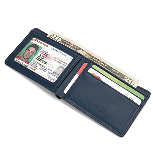 Mens Slim Front Pocket Wallet ID Window Card Case with RFID Blocking - Dark Blue