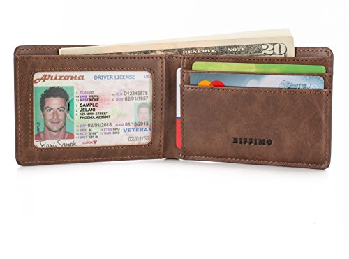 Mens Slim Front Pocket Wallet ID Window Card Case with RFID Blocking - Coffee