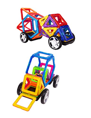 -. Feature : VARIETY COLORS AND GEOMETRY SHAPES - 18 Squares, 12 Triangles, 2 Hexagons, 2 Wheels, 2 Squares with Kids and 2 Rectangle / NO SAFETY WORRIES WHEN KIDS PLAYING - item is tested and approved for ages 3+, conform to CE, ASTM and EN71, designed with high quality ABS plastic, toxic free, rounded edges with injured protect,5000 times falling-test approved magnet won't fall out to prevent Choking Hazard by contained small parts / MAGNET'S POWER AND MAGNETIC MAGIC - designed with Neodymium Rare-Earth Magnets which offer maximum magnetic power that allow your child to build the large structures with others shapes and enhance it with compatible accessories / INTELLIGENCE DEVELOPMENT & IMPROVE IMAGINATION- pretend play naturally provide opportunities for practicing different thinking skills, such as imitation, cause and effect, problem solving, symbolic thinking, others preschool abilities of building their own construction / STEM CONCEPT TRAINING AND EDUCATIONAL PLAY - colorful Geometric Shapes to help kids to improve Cognition, learning Basic Math and Science concepts, a capacity for Creative, Divergent thinking. Play group sessions encourage a child to test spatial relationships and mentally rotate objects in the mind's eye. Such practice might lead kids to develop superior spatial abilities