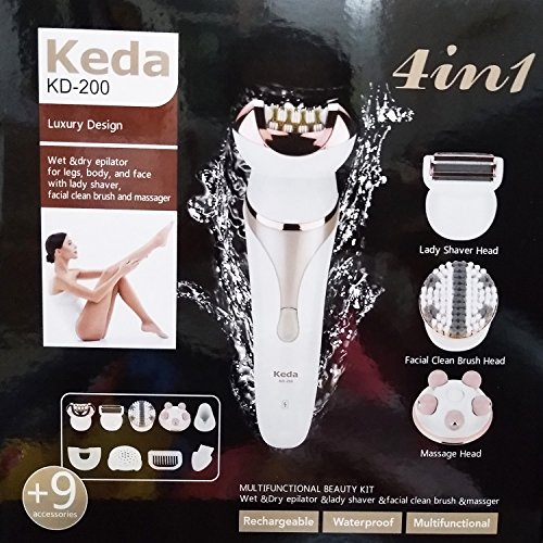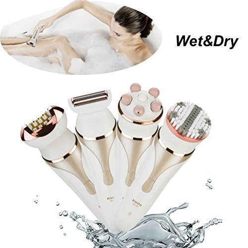 Cordless Hair Removal Electric Shaver Electric Epilator Facial Clean Brush and Massager 4 in 1 for Full Body Hair Care Bikini Trimmer with Washable Head...
