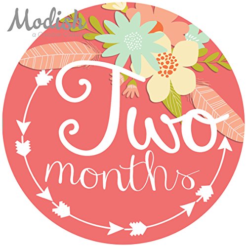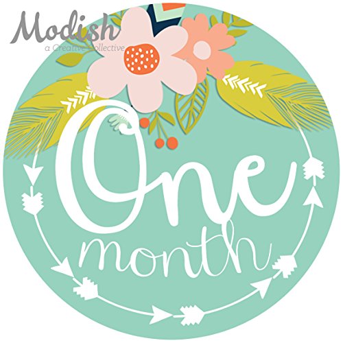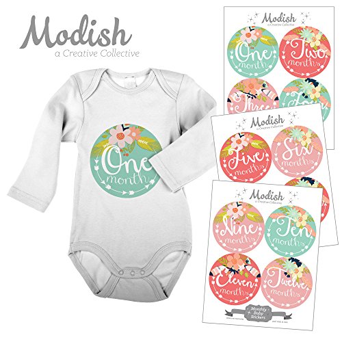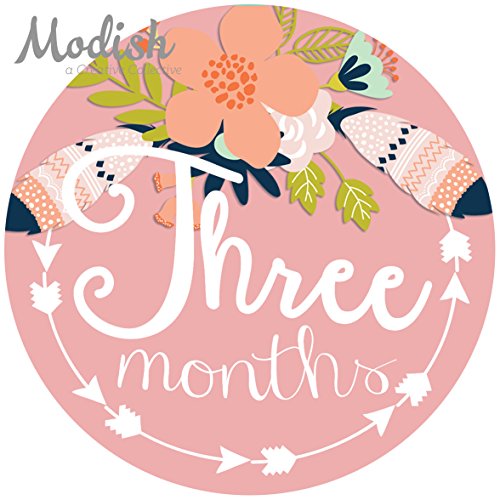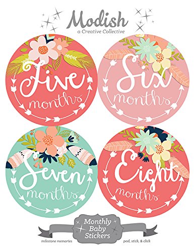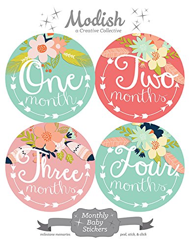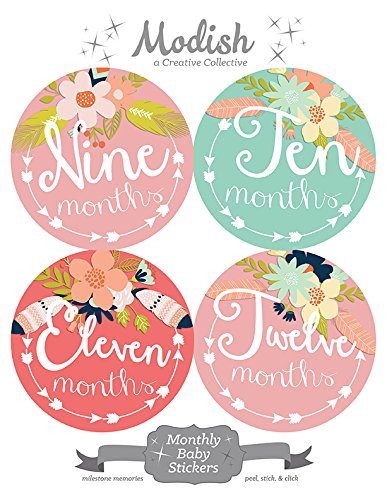 -. Title : 12 Monthly Baby Stickers, Tribal, Flowers, Feathers, Arrows, Pink, Mint, Coral, Baby Book Keepsake, Baby Shower Gift
